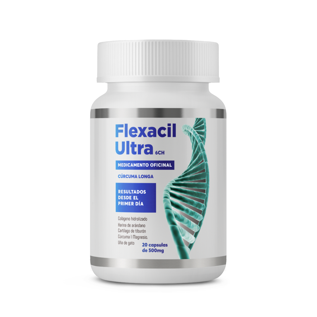 Flexacil es un suplemento alimenticio en presentación en cápsulas, conocido en su envase como Flexacil Ultra.